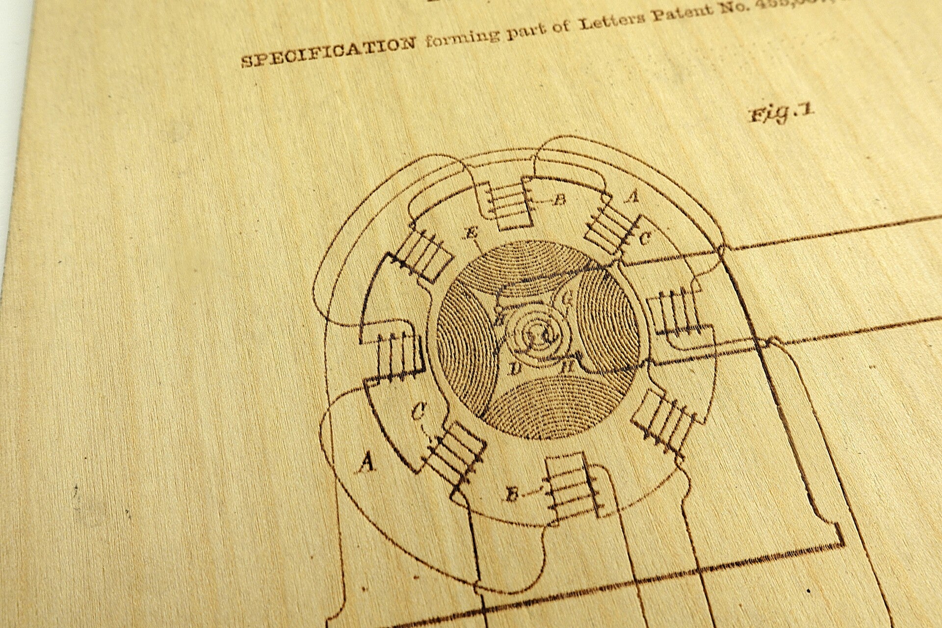 Suomalaiselle 0.8mm lentokonevanerille laserkaiverrettu taulu.